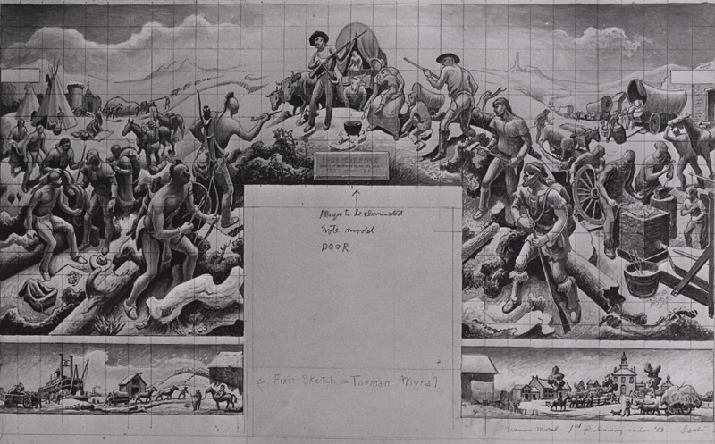 Having refined the mural design during the summer and fall of 1958, Benton wrote a new draft of his memorandum about the mural, which he titled "Mural Project: Independence and the Opening of the West." He shared the memorandum with Truman, who was completely satisfied with what he read and saw of Benton’s plans. On December 1, 1958, Truman sent a letter to David Lloyd about his meetings with Benton. "I believe we worked everything out to the complete satisfaction of both of us," he wrote.