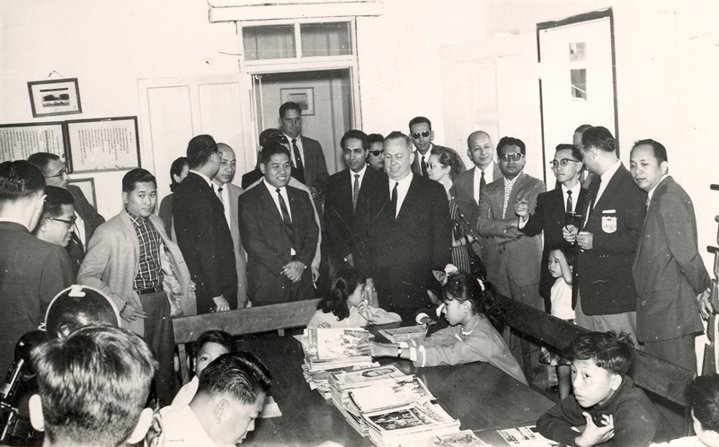 Back in Hong Kong, work proceeded on the addition to the building in Yuen Long that was to hold the future Nixon Library. It was dedicated on February 28, 1954, and Nixon sent Sales a telegram to be read at the ceremony: "There is nothing that gives me more pleasure than to have my name associated with your new children’s library. . . . I can think of no factor more important to a free, independent, and prosperous Asia than the opportunity for the youth of Asia to learn the truth, untarnished by Communist propaganda."
