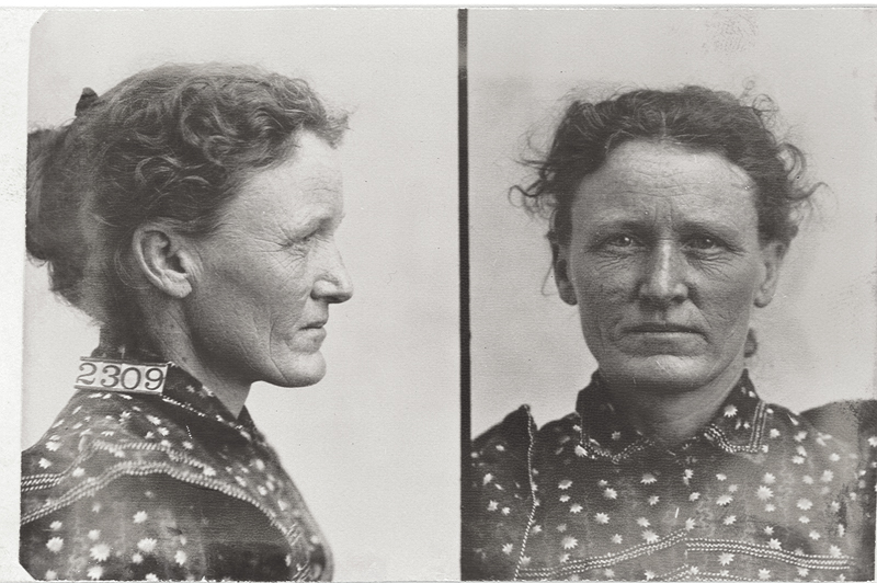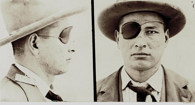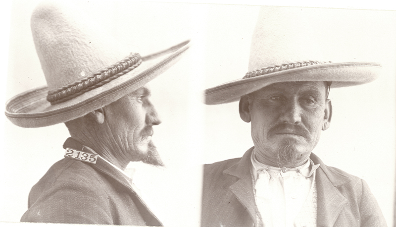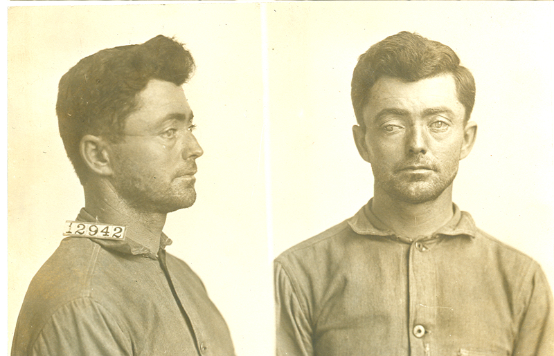 Also referred to as the mug shot, the inmate photograph captured front and side views. In photographs from the early years, most subjects are wearing hats, as was the custom of the day. The record clerk was forced to re-shoot inmate George Rives, who ruined his "hat negative on account of acting crazy."