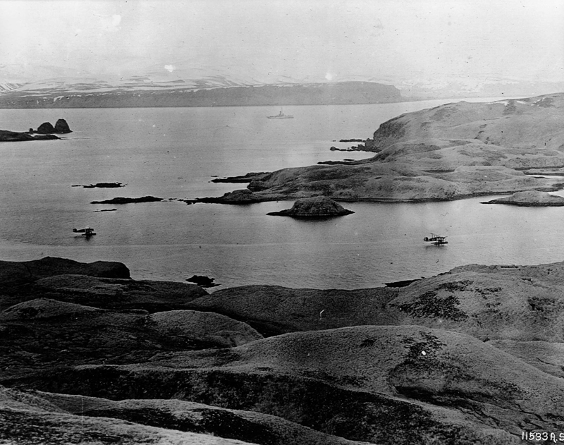 The fliers landed outside the village of Nikolski, on Copper Island, where the U.S. Navy ship Eider had positioned herself after being signaled by the pilots that they had changed course. Not long after, a boat put out from shore with five men aboard, two of whom were in uniform and all of whom were thoroughly, and understandably, confused: this was the first time in history a plane had ever crossed the Pacific, and no one had told them about it.