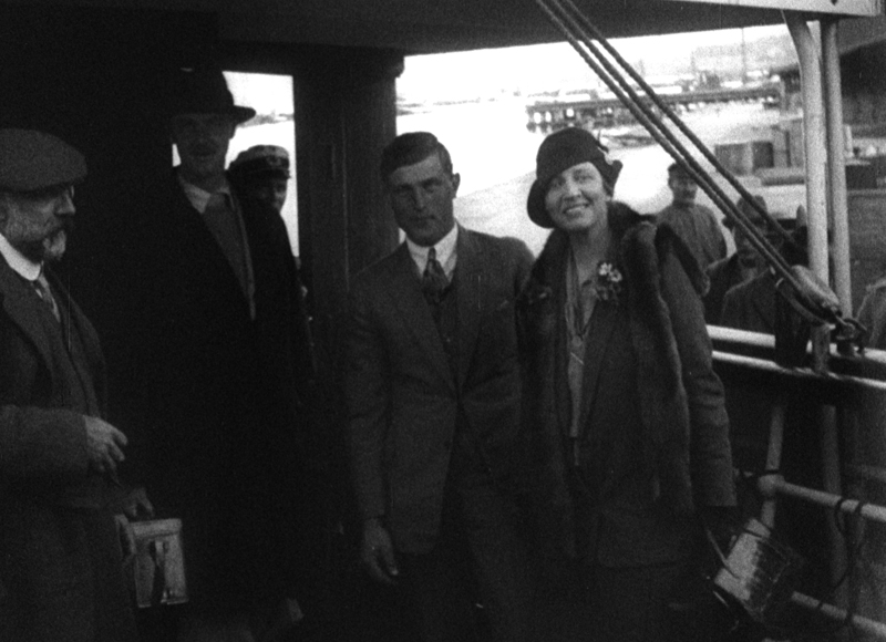 The film shows that the journey began auspiciously enough, with much fanfare and good wishes. Stafford and her two sons excitedly climb aboard and supplies for the expedition are loaded onto the Morrissey. A large crowd of well-wishers wave from the dock. According to Stafford's journal, a number of distinguished Arctic explorers were among them, including Matthew Henson, Peary's right-hand man during his Arctic expeditions; Vilhjalmur Stefansson, who organized the Canadian Arctic Expedition of 1913–1916; and Louise Boyd, who at that point had three Arctic expeditions of her own under her belt. Boyd even presented Stafford with a plush polar bear and a St. Christopher's medal to keep with her on the journey. In addition, Stafford was given the honor of debuting the flag of the Society of Women Geographers.