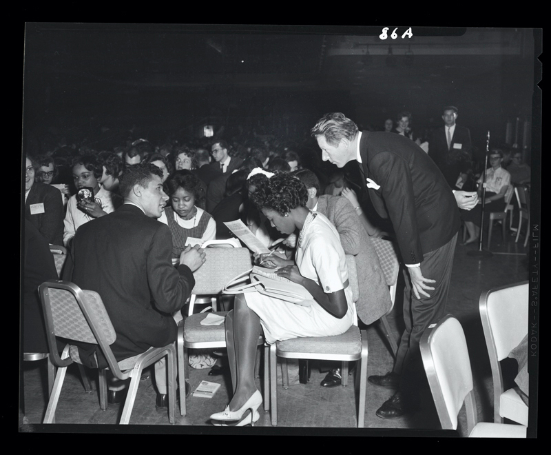 Certainly, discrimination and racial tensions were far from eliminated during the fifties, but when the Golden Anniversary Conference convened in 1960, attitudes were perceptively different. There was little opposition to resolutions that called for an end to segregation in schools, housing, and employment. More than half of the workgroups demanded an end to discrimination, and a number voted to support "current" sit-ins at lunch counters. To make the point, a number of "aggressively progressive" youth delegates, noted Ben Furman in an April 2, 1960, New York Times article, spent their free time organizing picket lines to show support for these sit-ins.