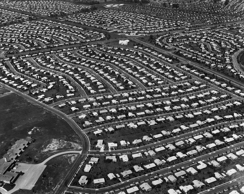 Over time, housing demands were alleviated for the growing middle class. The Veterans Administration program of guaranteed mortgage insurance to returning GIs allowed families to build or buy new homes, and suburbs such as the famous Levittown, New York, became the new communities and towns of the mid-20th century.