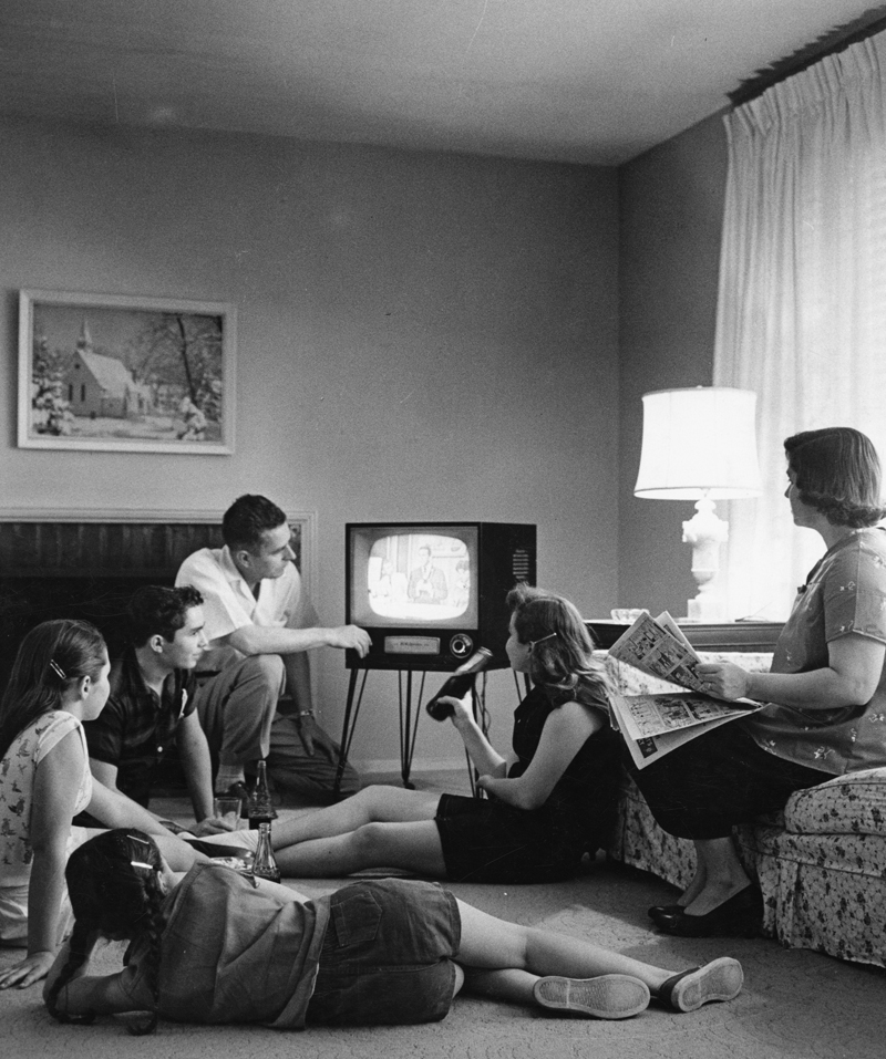 Between 1946 and 1960, 59.4 million children were born in the United States. They learned to read with Dick and Jane or with Jack and Janet. They, as well as the teenagers who were children during World War II, often attended schools that were overcrowded. They were told to "duck and cover" in the event of a nuclear attack, and for an increasing number, family mobility meant growing up in the suburbs. This was the first television generation.