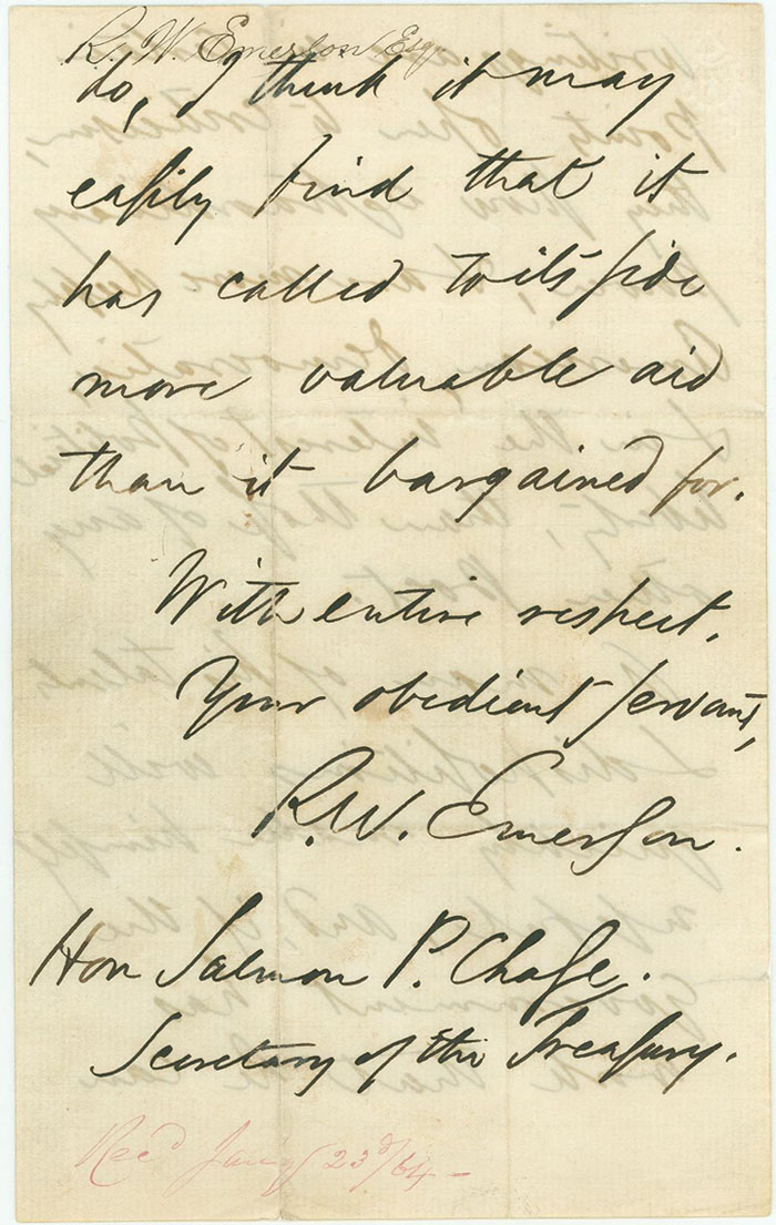 Ralph Waldo Emerson's January 10, 1863, letter of recommendation addressed to Secretary of the Treasury Salmon P. Chase is in Whitman's personnel file in General Records of the U.S. Treasury, Record Group 56, National Archives at College Park, Maryland. The Whitman Archive has transcriptions of that letter and for the letter to William H. Seward on the same date.