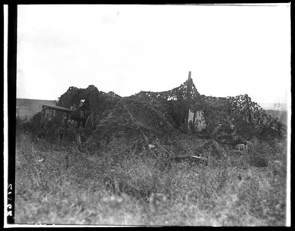 In 1916 nets, garnished with colored raffia or strips of canvas and placed as mounds over guns, had replaced many of the disruptively painted, solid canvas covers introduced on a large scale by the French in 1915. By late 1917, however, the new British flat-top nets of 1917 had become the most effective way to camouflage guns and their emplacements.