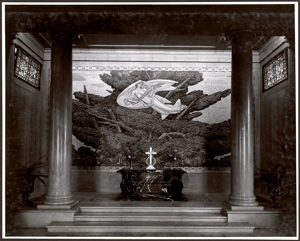 Not a man to keep his art entirely divorced from the war, he designed two mosaics: one to adorn the chapel at the small cemetery at Suresnes, the only American War Cemetery in Greater Paris, and the other for the chapel of the St. Mihiel War Cemetery at Thiaucourt, about 10 miles from where he had served with First Division in early 1918.
