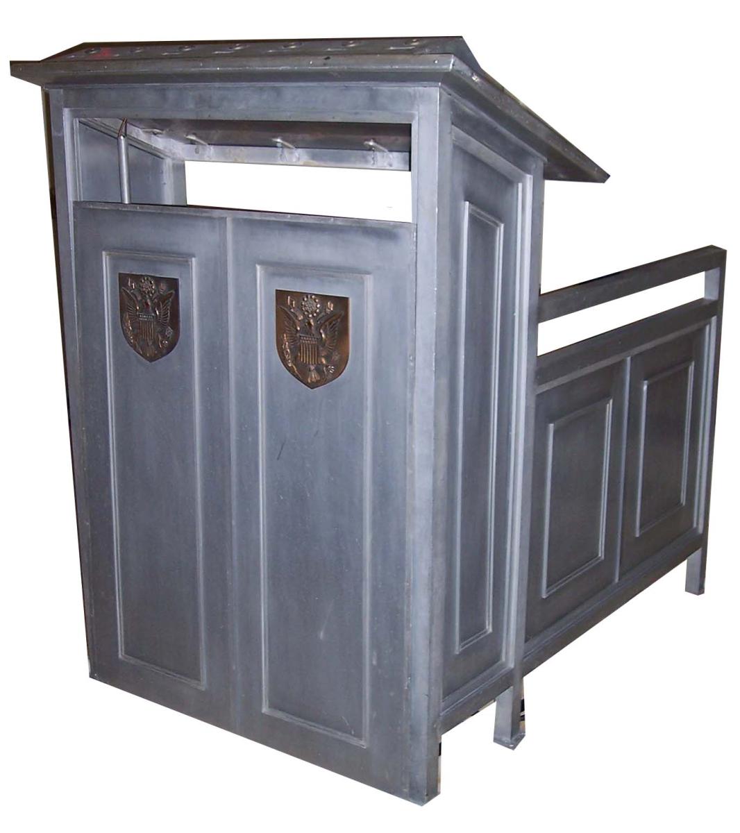 The President spoke from a metal podium especially designed for him. The rails on either side allowed him to “walk” himself to the front, and the side panels helped stabilize the podium.