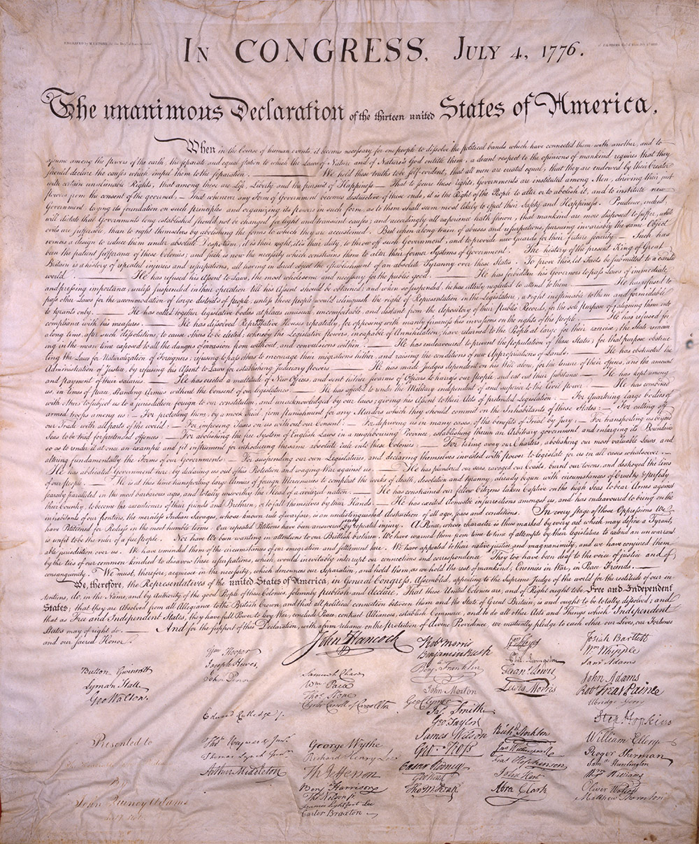 The prints of the Declaration made from this copperplate are the ones most familiar to Americans, and they provide a clear image of the document that established our nation and allow us to easily read the words of the Founding Fathers and examine their signatures. The original Declaration, more faded than it was in 1820, is on permanent display in the National Archives Rotunda.
