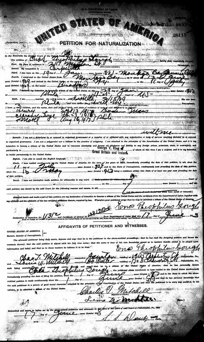 After submitting the required “declaration of intention,” Gough submitted his formal “petition for naturalization” several years later, in 1918. The information provided on that form reads: