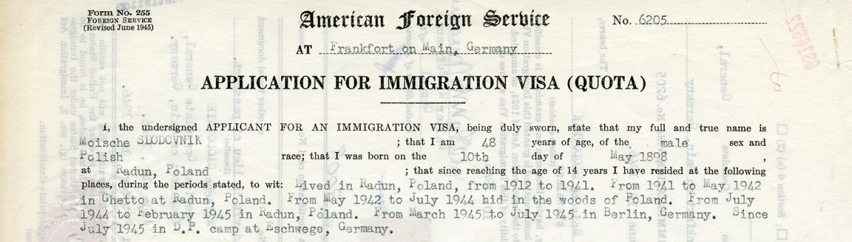 Born May 10, 1898, in Radun, Poland, Moische had spent his life until World War II in his hometown. He then moved to the ghetto at Radun for a year, fled to hide in the woods of Poland for two years, and eventually spent time in Berlin, Germany, and in a displaced persons camp at Eschwege, Germany, until National Refugee Service, Inc. paid his passage to the United States. Annie had no idea how Moische had survived or what became of him at the end of the war.