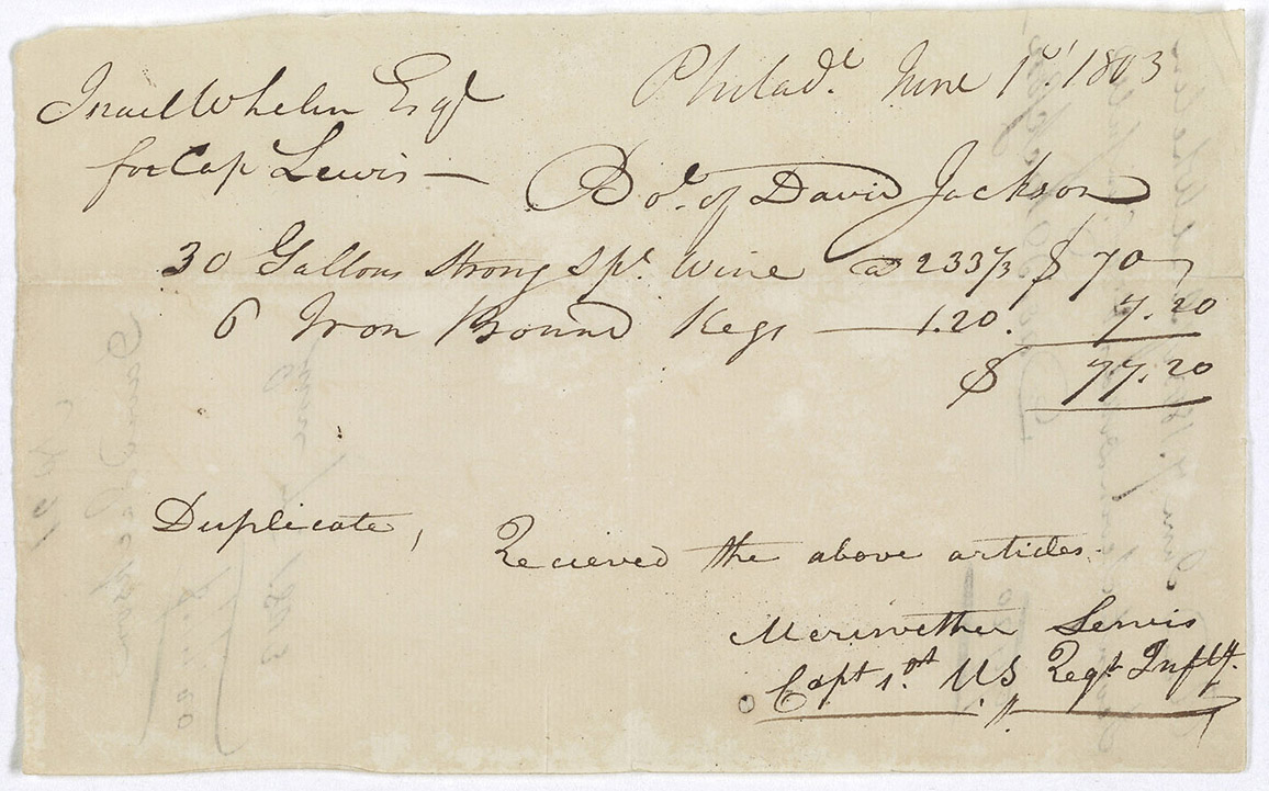 Visitors can also examine a list of liquors delivered to the Navy during the Revolutionary War, an 1803 receipt for kegs of “strong wine” signed by Meriwether Lewis for the Lewis and Clark expedition to the West, and a 1790 permit to sell liquor in Essex County, Massachusetts.