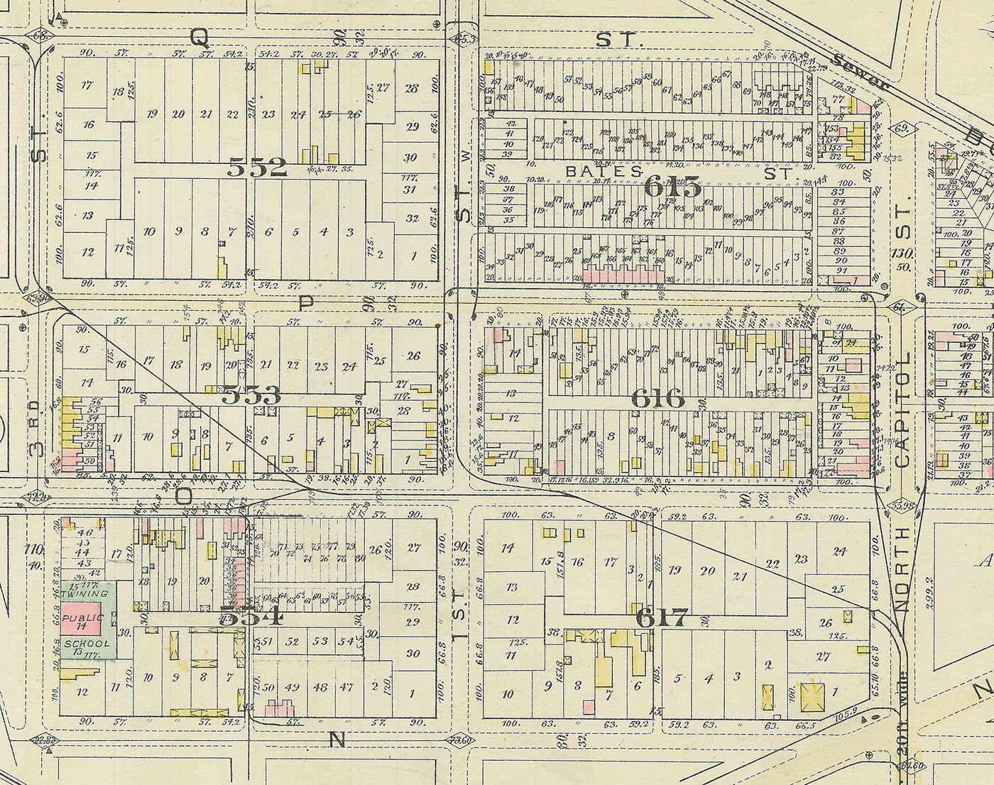 The western end of Square 616, where O and P Streets met First Street, had an African American cluster.