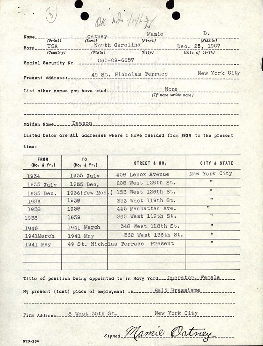 9. Mamie Oatney, Department of the Navy Official Personnel Folder, Religion listed.