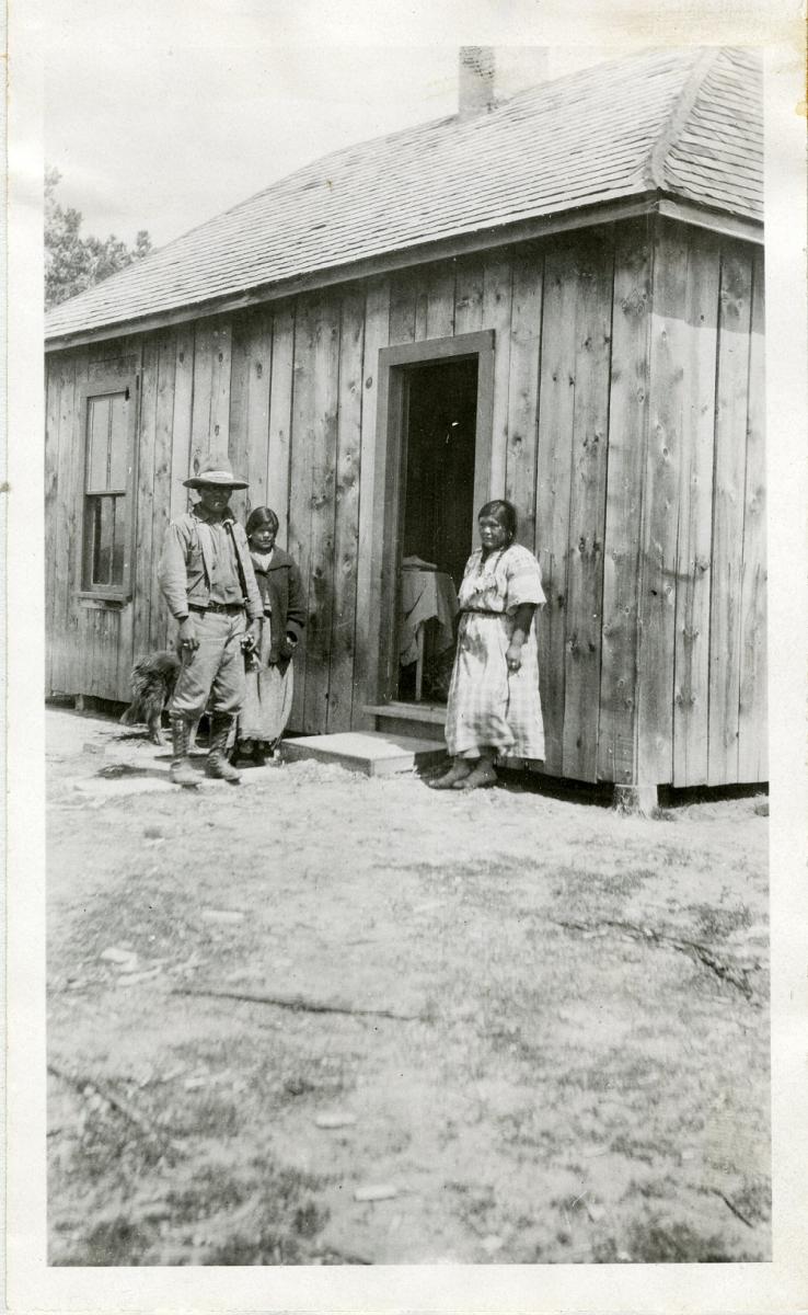 In 1922 the young Ute Julius Cloud, who had three years earlier served overseas in the U.S. Army, was just starting out farming his allotment, living in a “fair” appointed two-room house with his family.21 Elsewhere on the Southern Ute Reservation, the Red and Gunn families lived together in a two-room adobe house. The home was in poor condition, but they had a good barn, equipment, and a 20-head herd of sheep.22 Unfortunately, their photograph was taken too quickly; one of the visiting party was captured taking notes in the foreground, and the rest of the shot is out of focus.