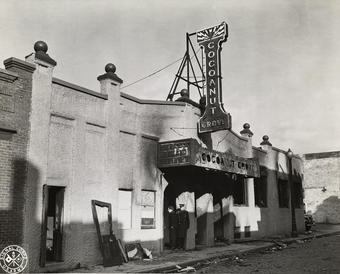 Those unable to escape during the fire’s first moments faced little chance of survival, given how rapidly the fire spread and consumed the building. In the end, the conflagration would claim the lives of 492 persons—a count exceeding the building’s approved occupancy level. Causes of death were mainly due to asphyxiation and extreme burns sustained from the fire. To this day, the Cocoanut Grove is remembered as the location of the deadliest nightclub fire and second deadliest single-building fire in American history, only surpassed by a 1903 fire at Chicago’s Iroquois Theatre that took 602 lives.