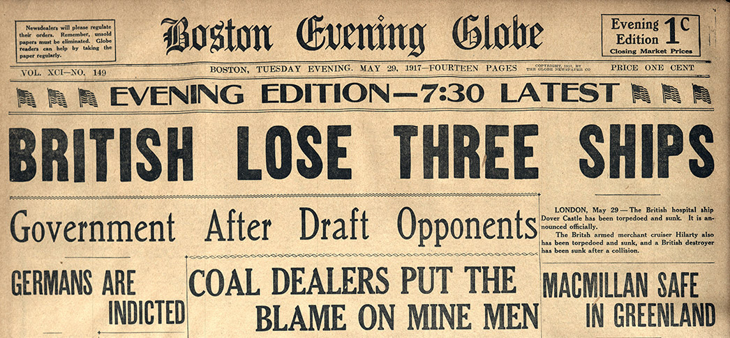 The United States is at war. Aging veterans who had fought in the Civil War now called on a new generation of Americans to perform their duty to safeguard democracy. The front page of the Boston Globe carried their message: “We carried the flag then. You carry it now.” World War I, as the conflict came to be known, would claim the lives of millions of people around the world, including 116,000 U.S. soldiers.