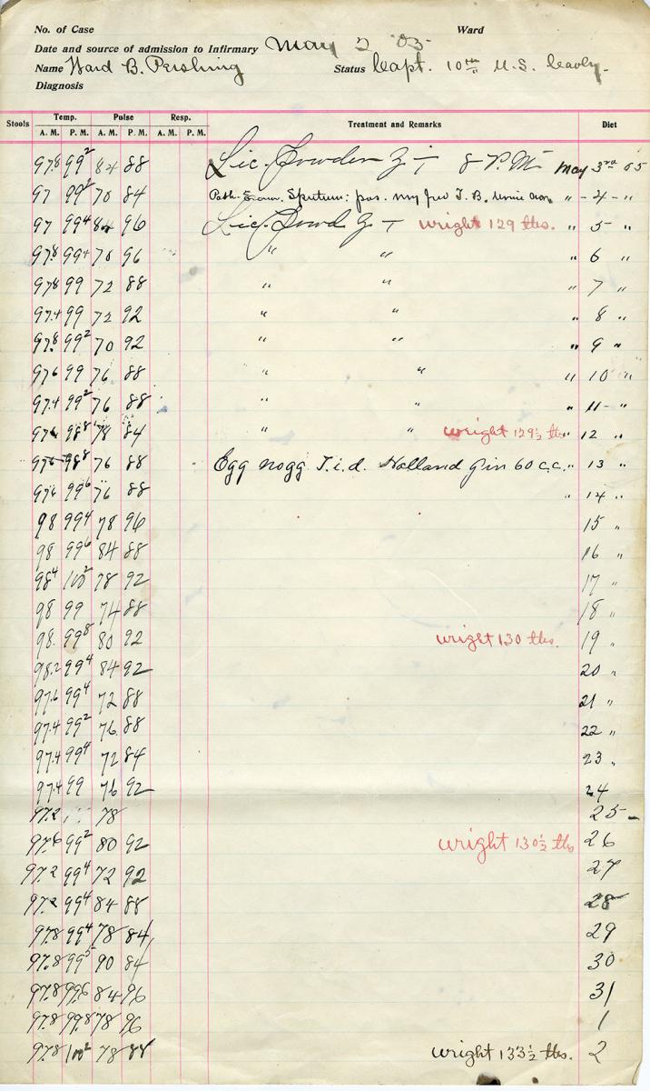 15. Ward B. Pershing Progress Sheet; Box 54; Medical Case Files, 1900–1912 (NRG-112-04-031); RG 112; NAD.