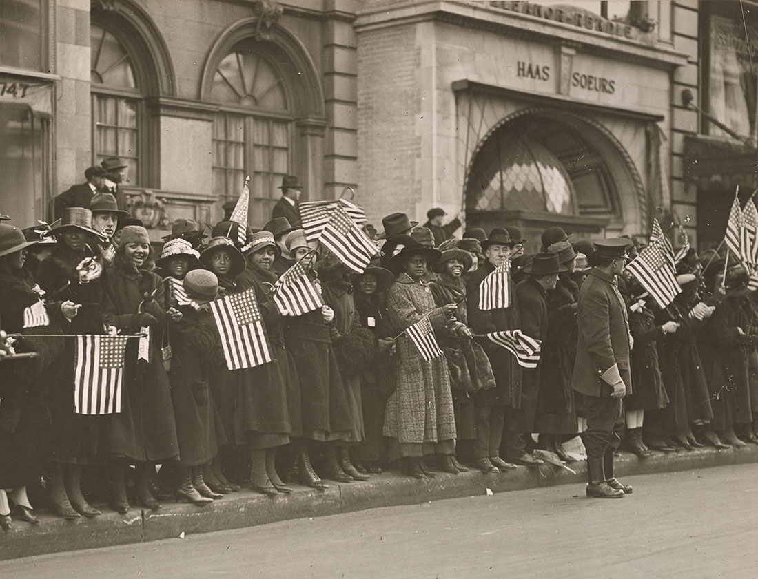 When the 93rd Division returned to the United States, its men returned to their homes. Although the AEF denied them recognition of their exploits while in France, American cities generally welcomed their soldiers with open arms. In February 1919, the Harlem Hell Fighters of the 369th proudly marched down Fifth Avenue in New York City with their French awards prominently displayed on their uniforms. With the American colors waving at the head of the column, New York’s most prominent citizens came out to honor the troops, including New York Governor Al Smith and former Governor Charles Whitman. Rodman Wanamaker and Maj. Gen. Thomas H. Barry also stood in the reviewing stand alongside acting New York Mayor Robert Moran.