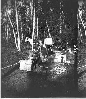 By Joe Bauman Jack Hillers squats in a clear spot in a grove of aspen and pine, diligentlycleaning a piece of glassthat he will use in makinga negative. It's incongruous to seesomething as delicate as glass in those hamlike hands. Packhorses wait behind one of his cameras, which is on a tripod and draped with the cloth that will keep sunlight out of his eyes when he aims the lens.