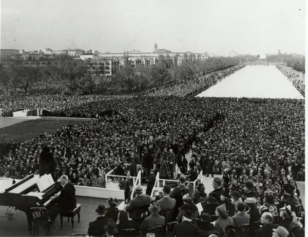 On Easter Sunday, April 9, 1939, thousands, upon thousands (an estimated 75,000 people) came out to the National Mall to hear Marion Anderson sing. Despite being an experienced, recognized and highly sought after performer, touring across Europe and America, Anderson was denied use of Constitution Hall in Washington, DC because she was Black. First Lady Eleanor Roosevelt claimed to have put in her resignation from the DAR in protest of their refusal to let Anderson perform in front of an integrated audience. Not only was she denied Constitution Hall, but a performance at the auditorium of Central High School in Washington, DC was refused as well.