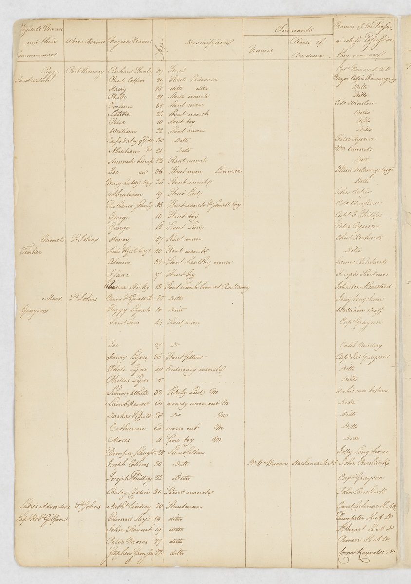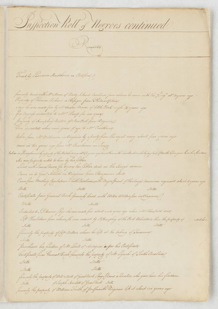 The Index of the Papers of the Continental Congress, is arranged alphabetically by name and subject. Each entry gives the date of the document, the type of document or a brief abstract, the "Item number", and the volume and page numbers. The Index uses the term "negro" to identify people of African ancestry, and "slaves" to refer to enslaved people. Other relevant subject headings include: slave trade; slavery; slave ships.