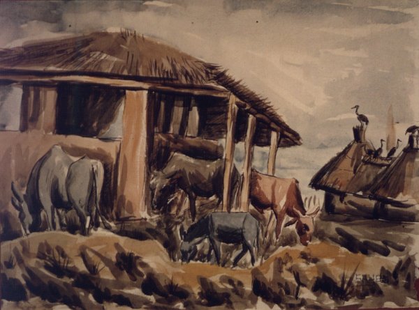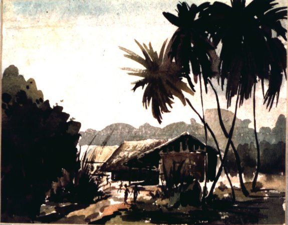 - Village,* watercolor. National Archives Identifier: 558821, Local Identifier: H-HN-AA-1W-1