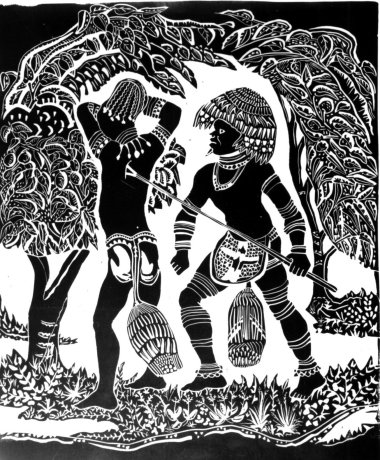 - Latanga with His Guard, linocut. National Archives Identifier: 558799, Local Identifier: H-HN-AA-1E-2