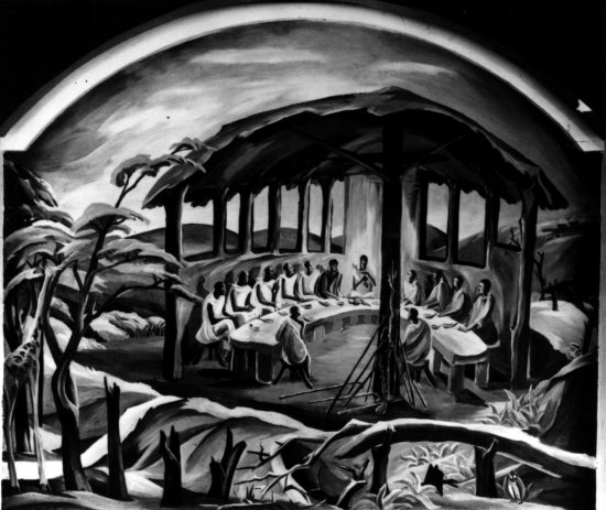 - Mural, Northern House of Assembly, Kano (?), Nigeria (1964). National Archives Identifier: 558810, Local Identifier: H-HN-AA-1J-9