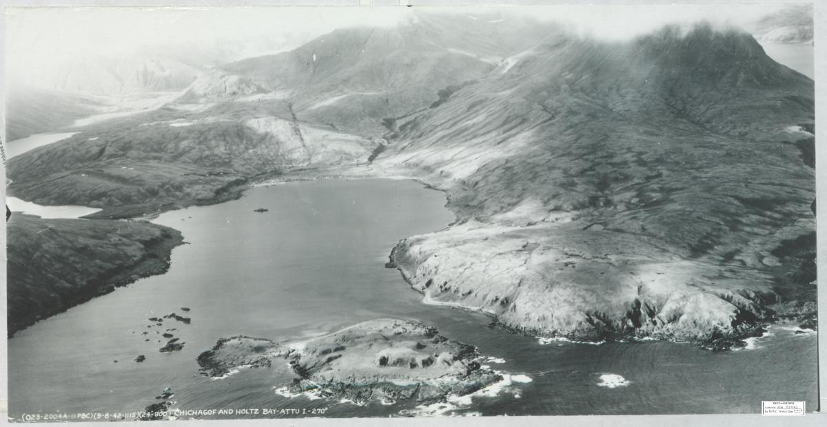 This series consists of aerial reconnaissance photographs of Attu Island, off the coast of Alaska. Locations include Chichagof Harbor, Holtz Bay, Sarana Bay, Alexai Point, and Kennon Island. The finding aid for the series is available at NARA at Seattle. This series is partially digitized.