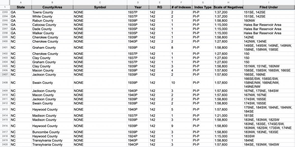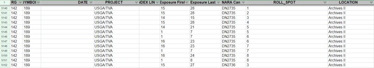 Aerial photographs for RG 142: Records of the Tennessee Valley Authority are in the series Aerial Photography of the Tennessee Valley Authority, 1933 - 1943. This series covers various counties in Alabama, Georgia, Kentucky, North Carolina, South Carolina, Tennessee and Virginia. Like other series of domestic photographs, you begin the search for these by using Special List 25, available for download digitally here and in the Cartographic Research Room.