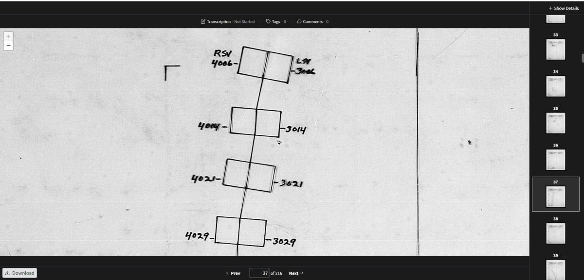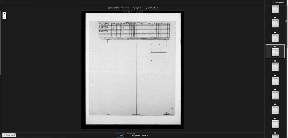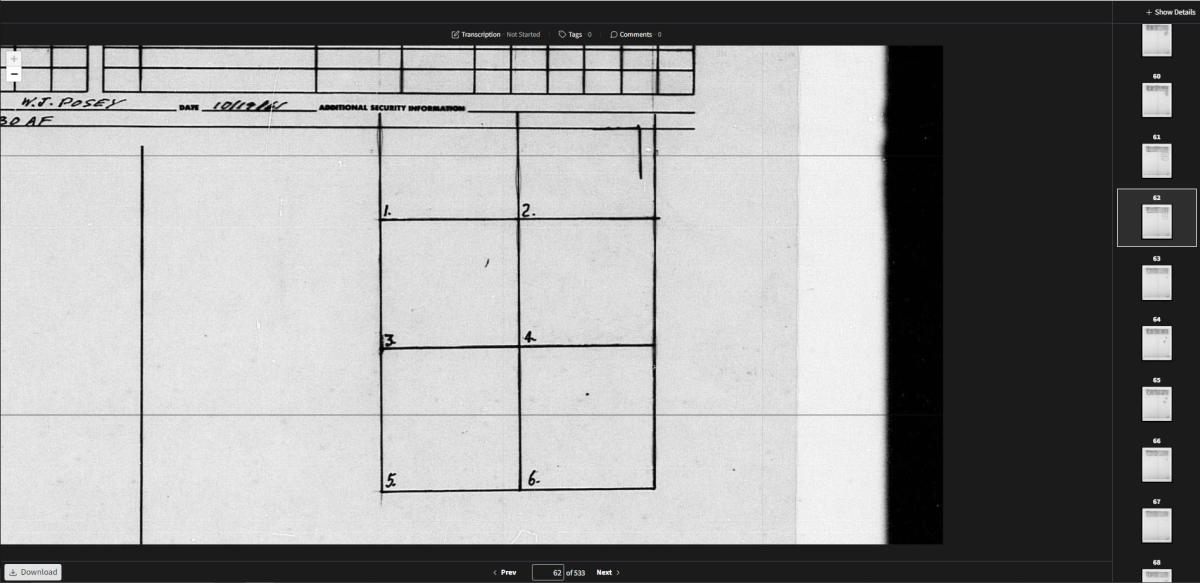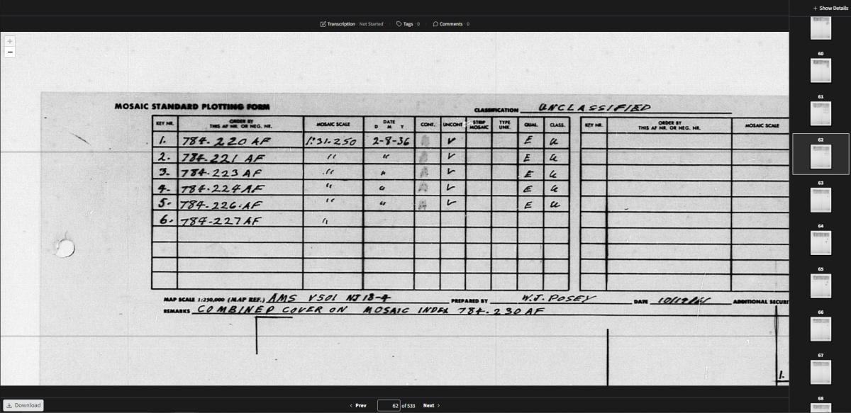 Searching for photographs works the same as other indexes, but identifying photographs is a little different. Like the other indexes, the numbered boxes on the overlay represent individual frame numbers on the mosaics.