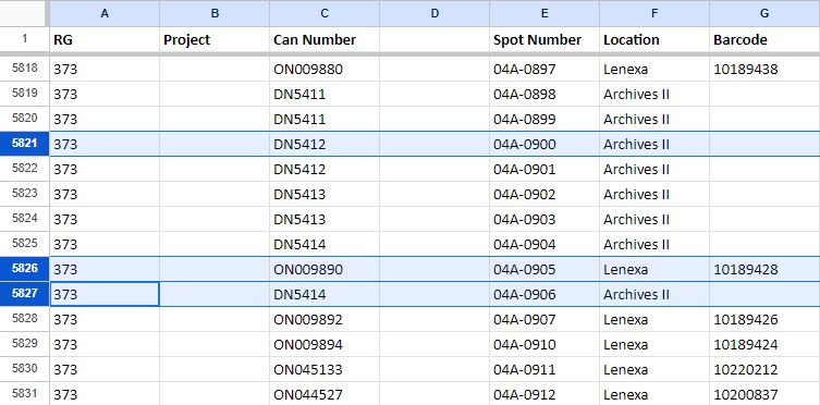 The spot number(s) will lead to film cans using the RG 373 can locator, available digitally by request at carto@nara.gov and in the Cartographic Research Room.
