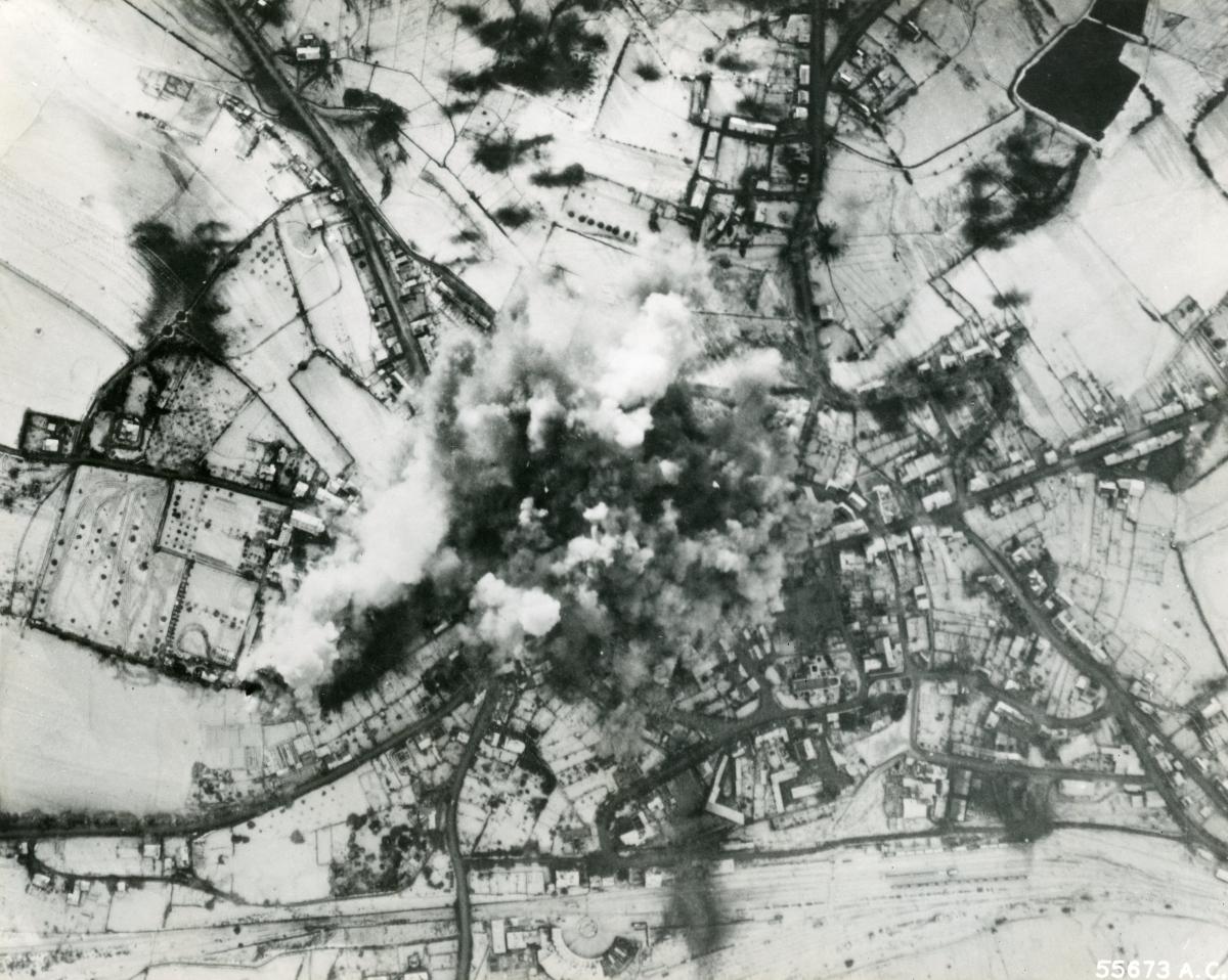 While the Cartographic Branch holds the majority of aerial photography held at the National Archives, the Still Pictures Branch also holds a large amount of aerial photography. The Still Pictures holdings are particularly strong on Air Force bombing. See more about these photographs below.