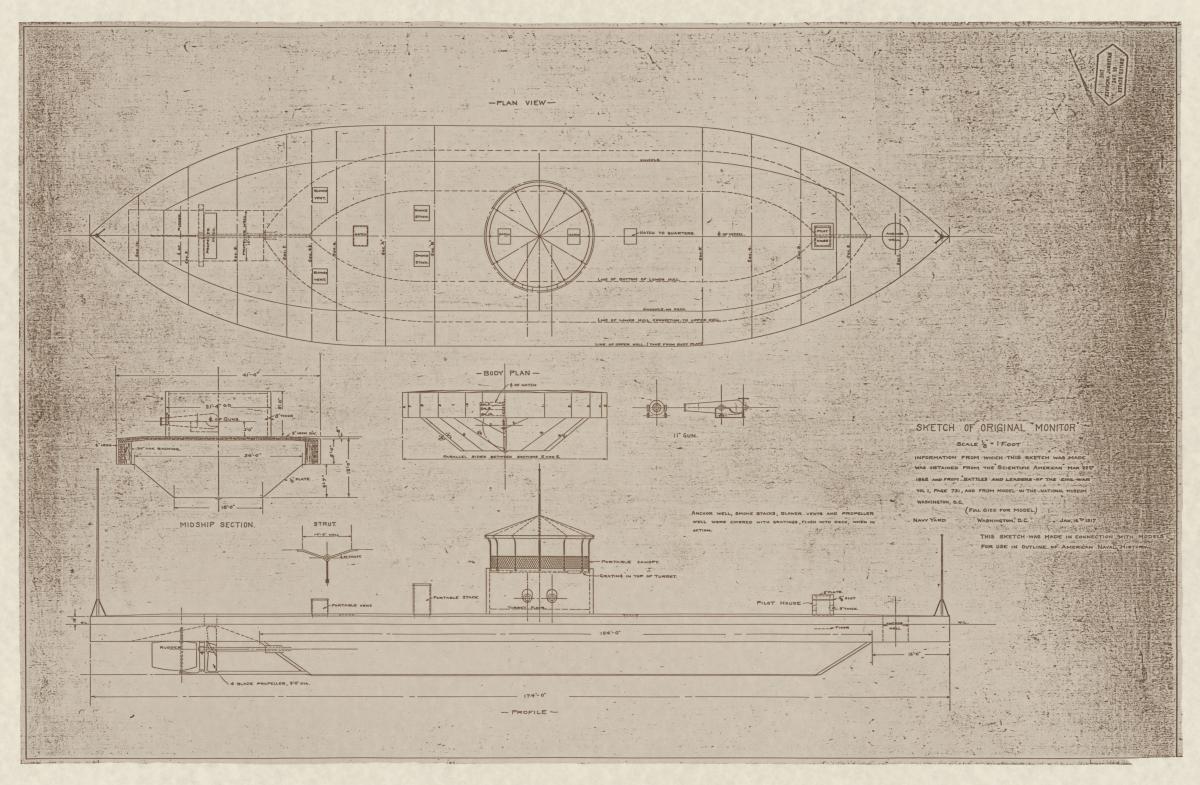 Some Confederate vessels are represented within the holdings, but most relate to Union vessels. Additionally, the series RG 19, Ship Engineering and Mechanical Drawings (BSE) contains plans relating to Civil War era gunboats and monitors. Information about the USS Monitor can be found within RG 370, Records Relating to the Discovery of the Wreck of the USS Monitor. See our section on Ship Plans for further information.