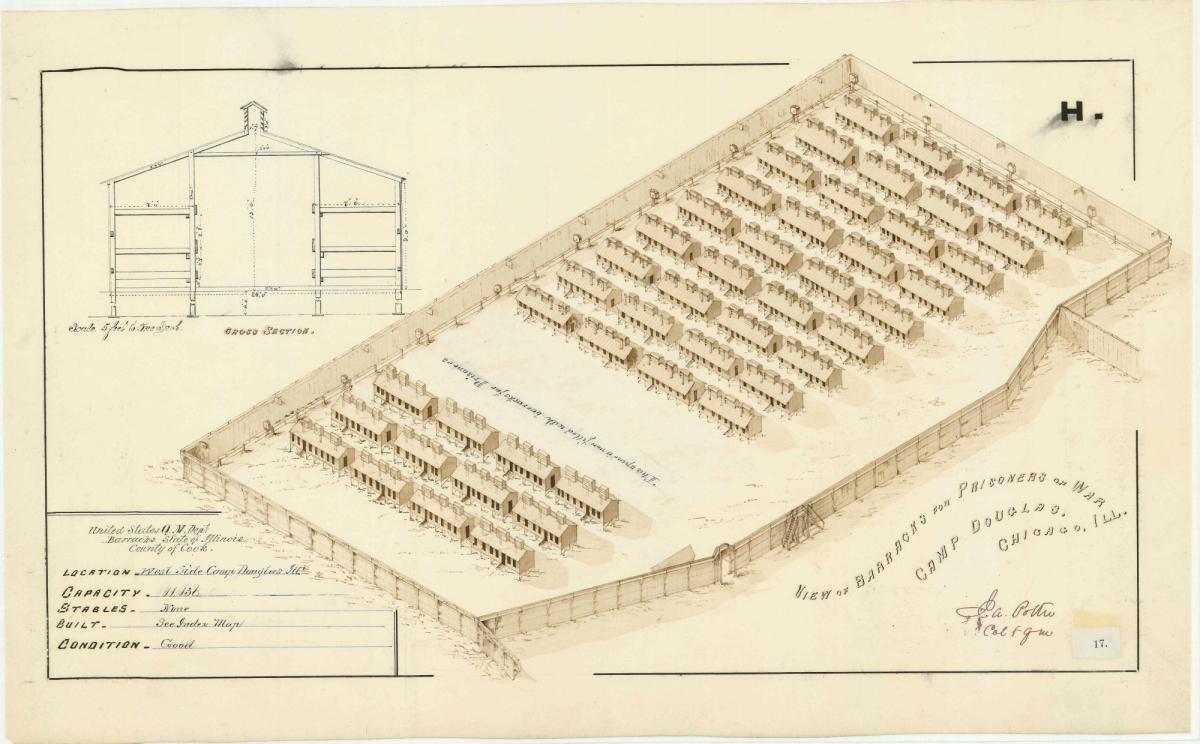 This series consists of manuscript and annotated maps and fortification plans. The majority are large-scale plans drawn during the Civil War of barracks, stables, forts, hospitals, and other buildings used by the Quartermaster Corps. It includes a set of 183 Civil War-era watercolor plans of barracks in the District of Columbia and 84 plans of facilities in Arlington and Alexandria, Virginia. Other items include post plans in the Territory of Michigan, Wisconsin, and Minnesota, and post plans of California dated in the 1870s. A few general maps and miscellaneous plans of railroad terminals also are included.