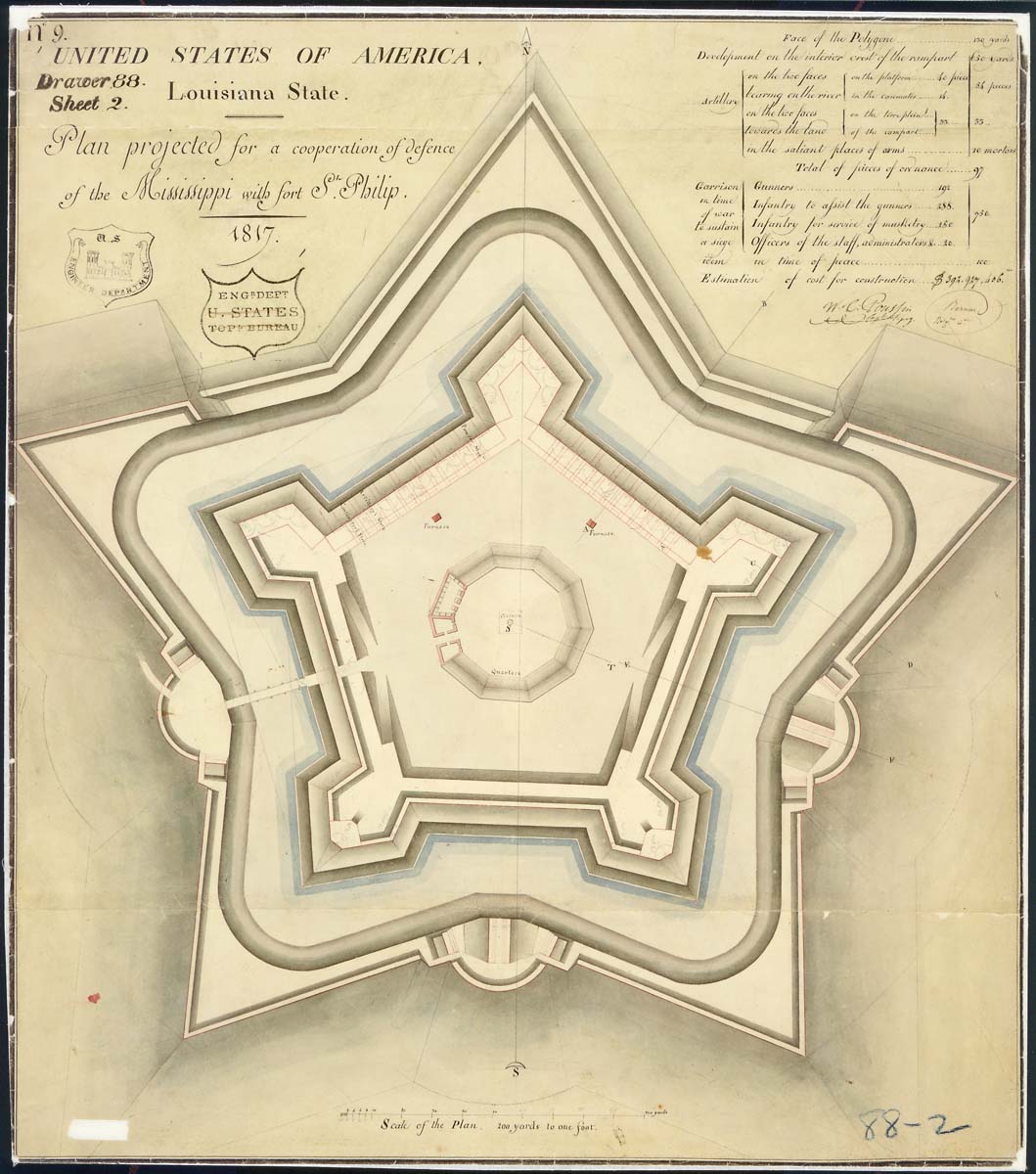 This series consists of plans, engineering drawings, diagrams, blueprints, maps, plats and sketches pertaining to military construction projects from 1790 to 1941. This series is partially digitized. It includes plans of coastal and harbor defense fortifications along the Atlantic, Gulf of Mexico, and Pacific coasts of the United States and its Territories; plans of military forts, camps, and posts in the interior of the United States; and plans of fortifications in foreign areas, including: the Philippines, the Panama Canal Zone, and Mexico. Also included are plans for standard military equipment such as guns and other ordnance, floating batteries, pontoon bridges, barracks, officers' quarters, channel obstructions, construction equipment, and torpedoes.