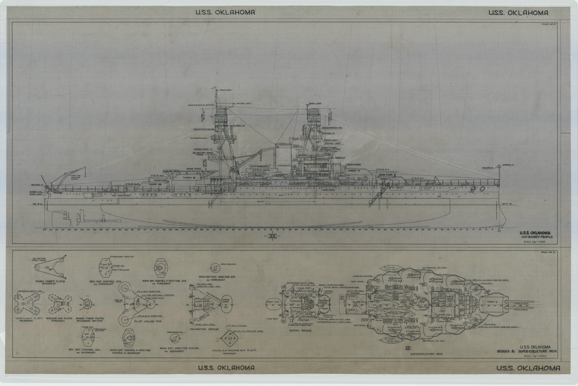The National Archives’ Cartographic Branch holds ship engineering drawings for a majority of vessels commissioned by the United States Navy dating from the 1790s through the Korean War era. These drawings mostly consist of inboard and outboard profiles, deck plans, and sections, although additional general arrangement drawings exist for some ships.