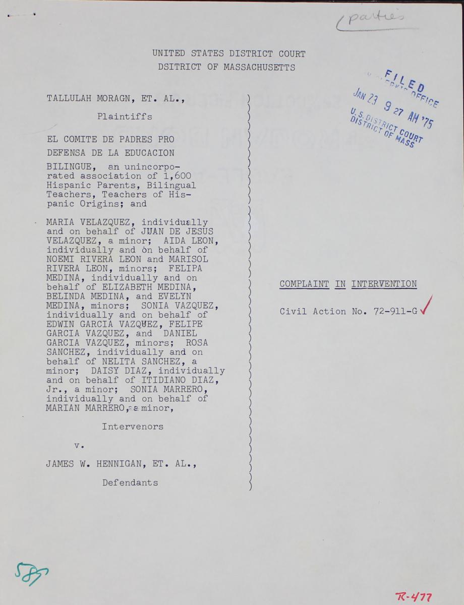 Complaint in Intervention from El Comite De Padres Pro Defensa De La Education Bilingue