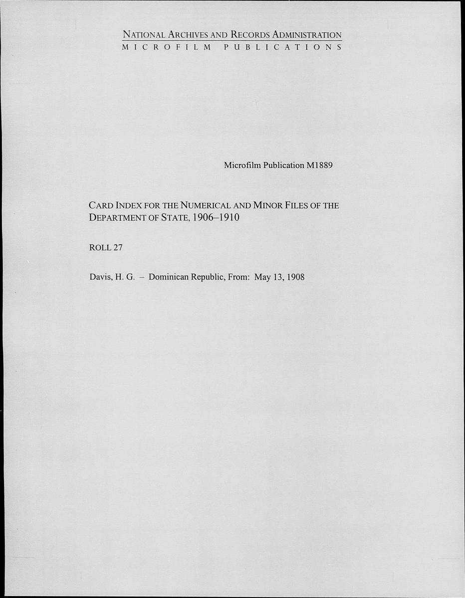 Davis, H.G. - Dominican Republic, From: May 13, 1908, Pan American Railroad Commission Records