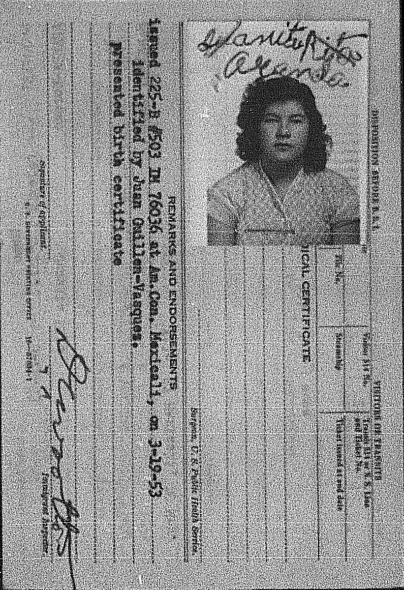 The card can be found on Roll 4. Manifests of Alien Arrivals at Calexico, California, March 1907-December 1952