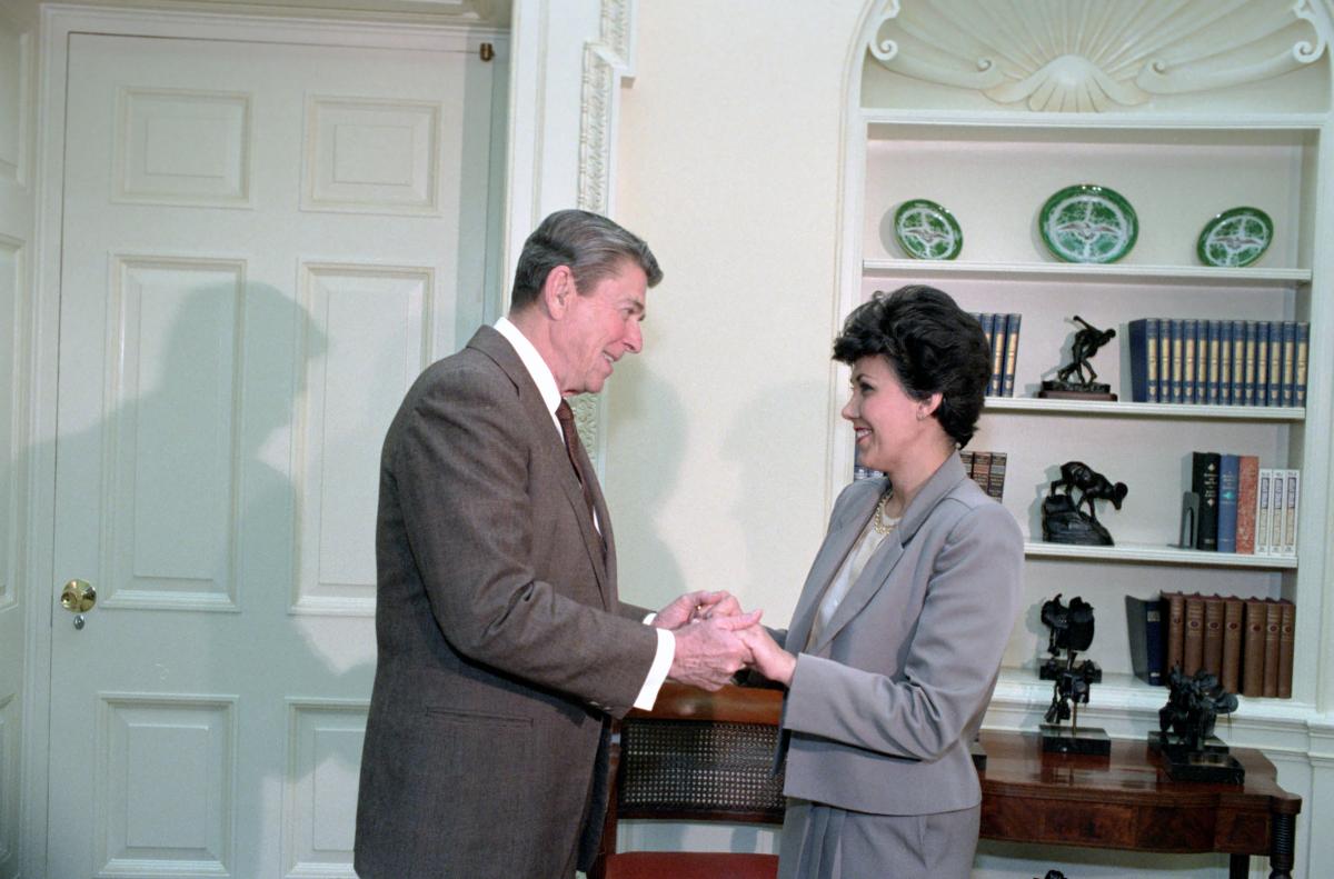 President Signing Hr 2230 Establishing a New Commission on Civil Rights with Linda Chavez and Clarence Pendleton in Oval Office