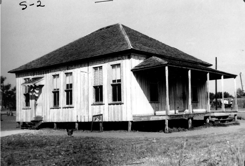 Front view of the unstable Mexican Ward School in a labor camp in Mathis, Texas.