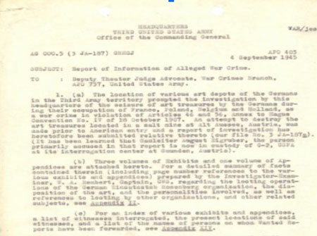 The Holocaust-Era Assets web pages provide a better understanding of the record holdings of NARA relating to the looting, locating, recovering, and restituting Holocaust-Era assets. Substantive research interest in Holocaust-Era Assets began in 1996 with various issues related to Swiss dormant bank accounts and gold looted by Nazi Germany. Within several years interests expanded to include, among other things, looted cultural property (including books, archives, manuscripts, and Jewish communal property), looted art works, unpaid and unclaimed insurance policies, and issues surrounding slave and forced labor.