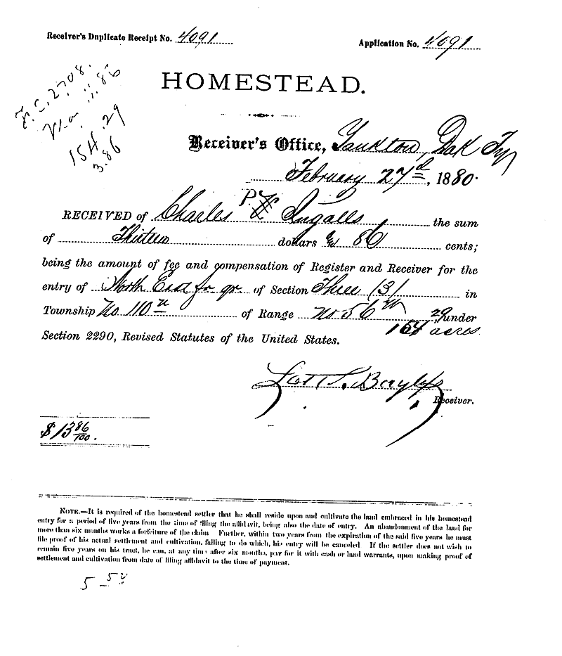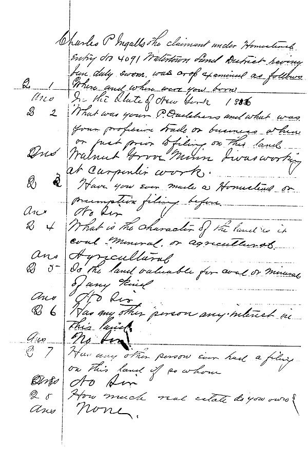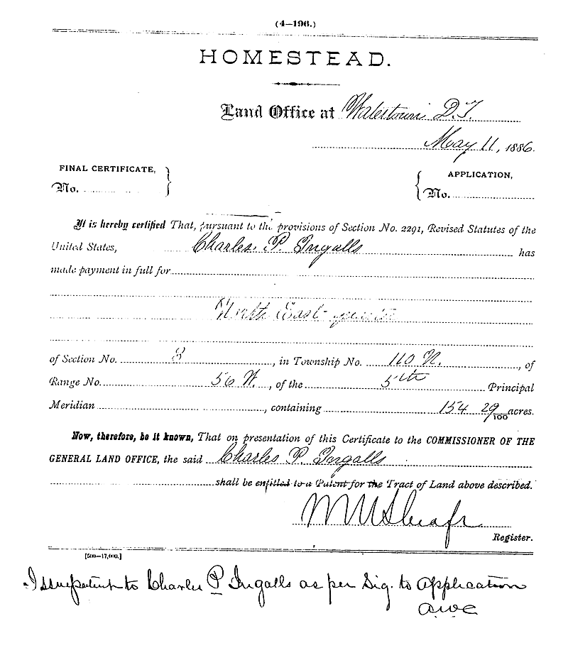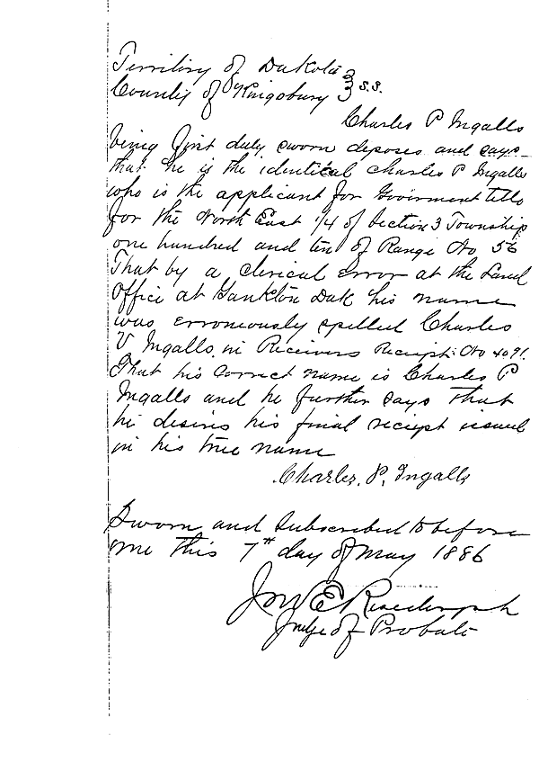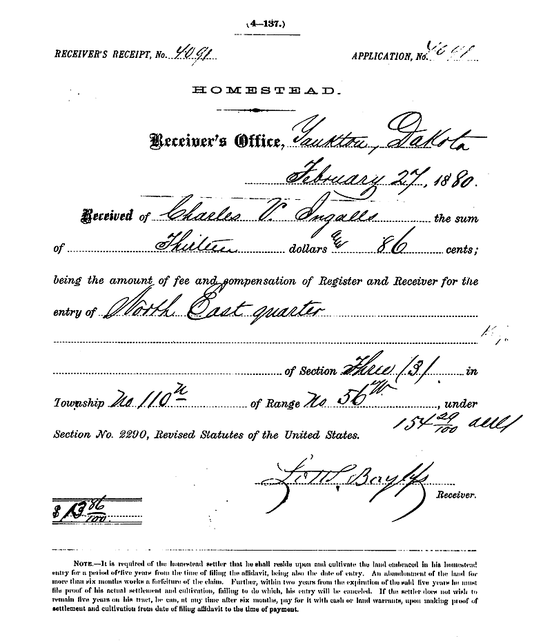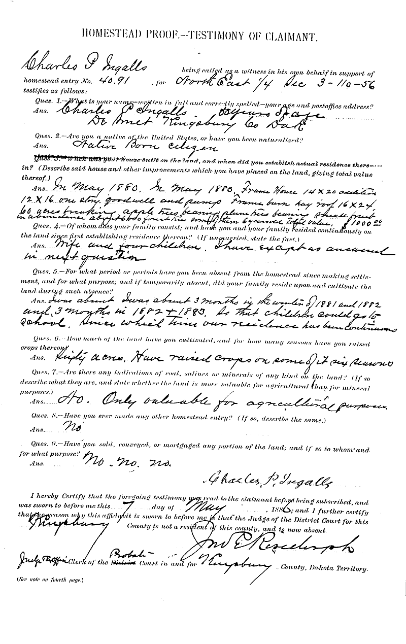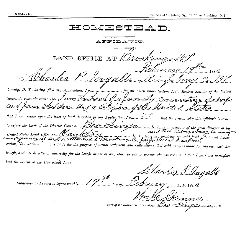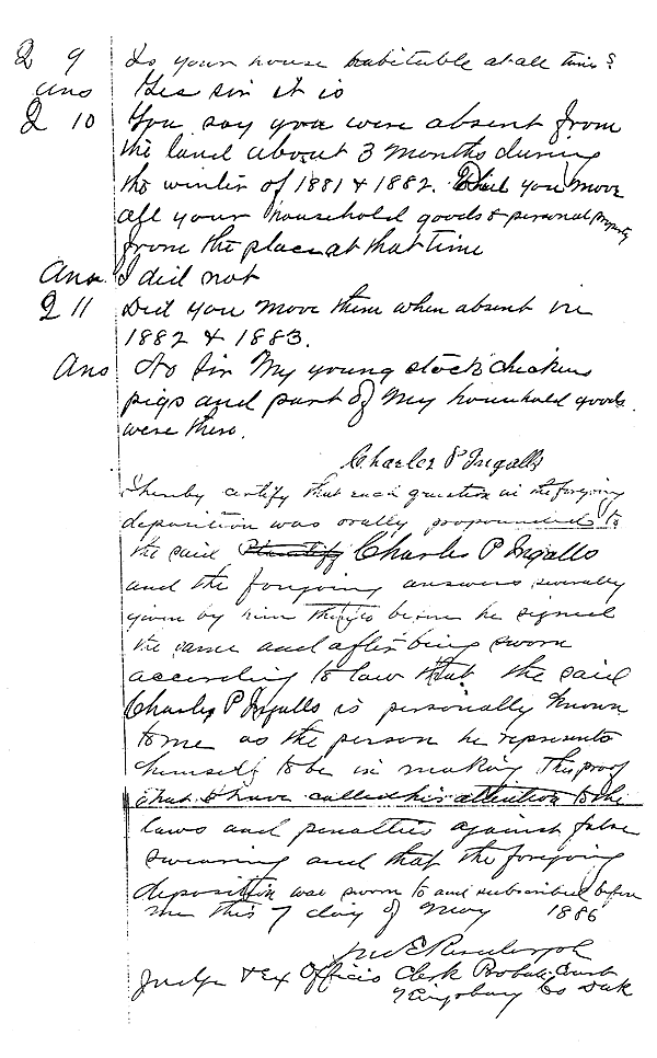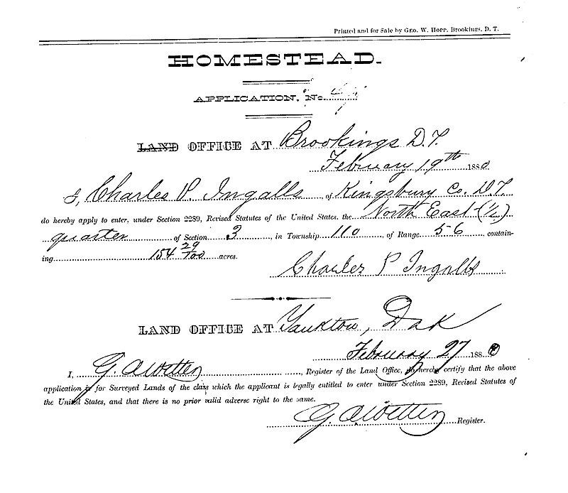 The following pages make up the homestead file of Charles Ingalls. Click on each thumbnail image for a close-up view.