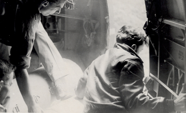 OSS Dispatchers Preparing to Drop Food, Clothing, and Medical Supplies to Downed Allied Airmen in Roumania (National Archives Identifier 6851110)
