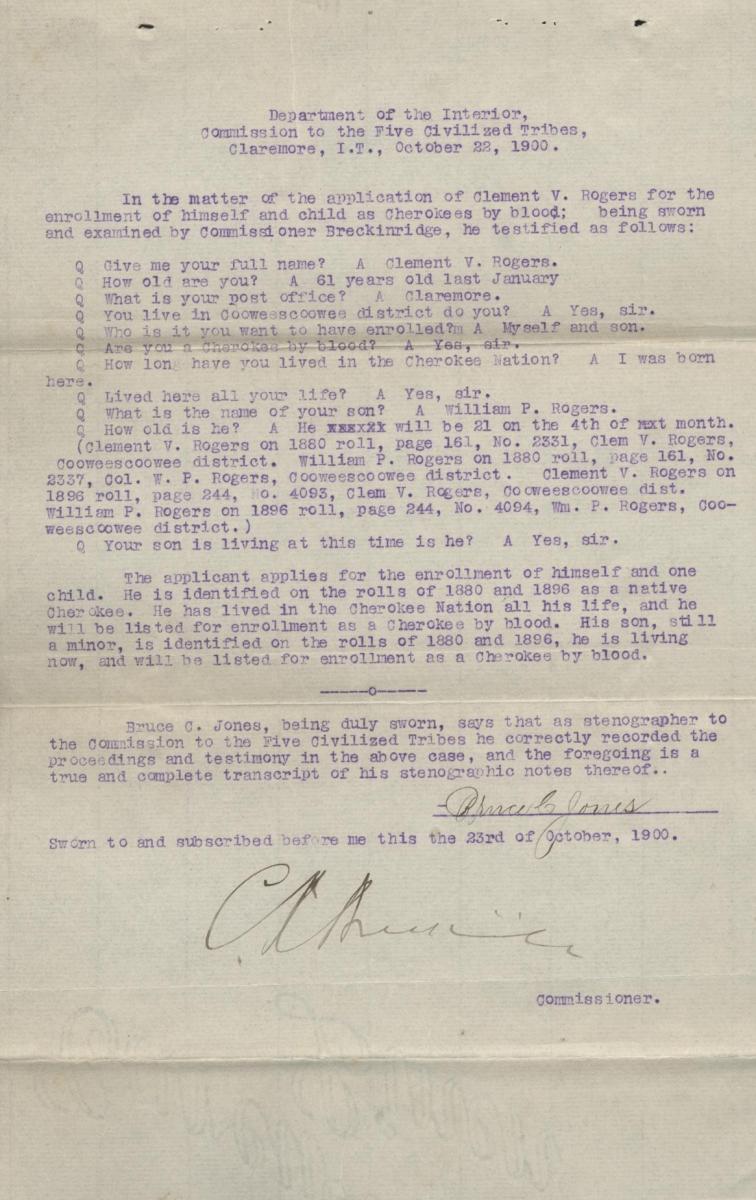 Dawes Enrollment Application for William P. Rogers, Cherokee Citizen by Blood, Application No. 4747