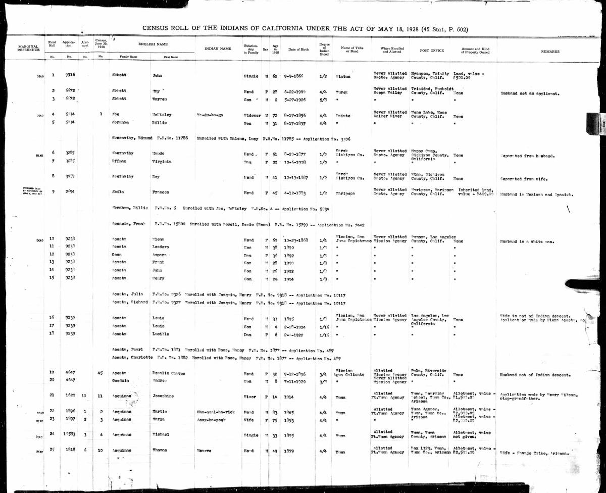 - 23,542 were enrolled as California Indians and listed on Roll 1;