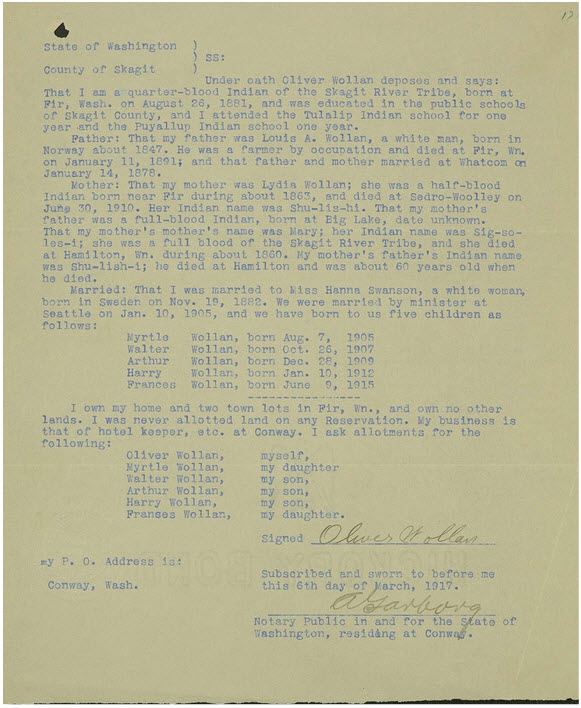 - From computers outside the National Archives, go to Ancestry.com and look for the "Washington, Enrollment and Allotment Applications of Washington Indians, 1911-1919."
