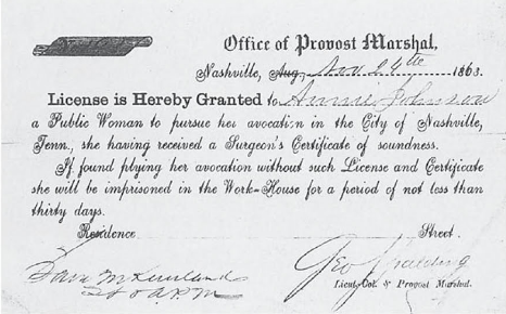 Prostitute License of Anna Johnson dated Nov. 24th, 1863.